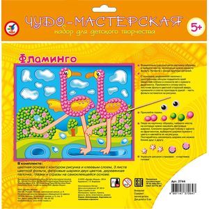 В комплекте: цветная основа с контурным рисунком и клеевым слоем, 3 листа цветной фольги, фетровые шарики двух цветов, деревянная палочка, глазки и стразы на самоклеящейся основе.