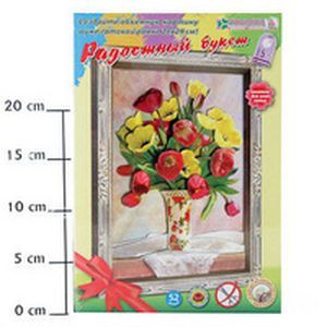 Комплектация: комплект готовых бумажных деталей, картонная картинка, рамка-коробка, комплект квадратов объёмного скотча.