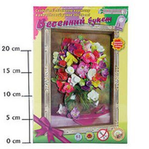Комплектация: комплект готовых бумажных деталей, картонная картинка, рамка-коробка, комплект квадратов объёмного скотча.