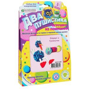 В комплект входит: пряжа, скрутики, помпоны, картон, самоклеящаяся бумага, клейкая лента, инструкция на русском языке.