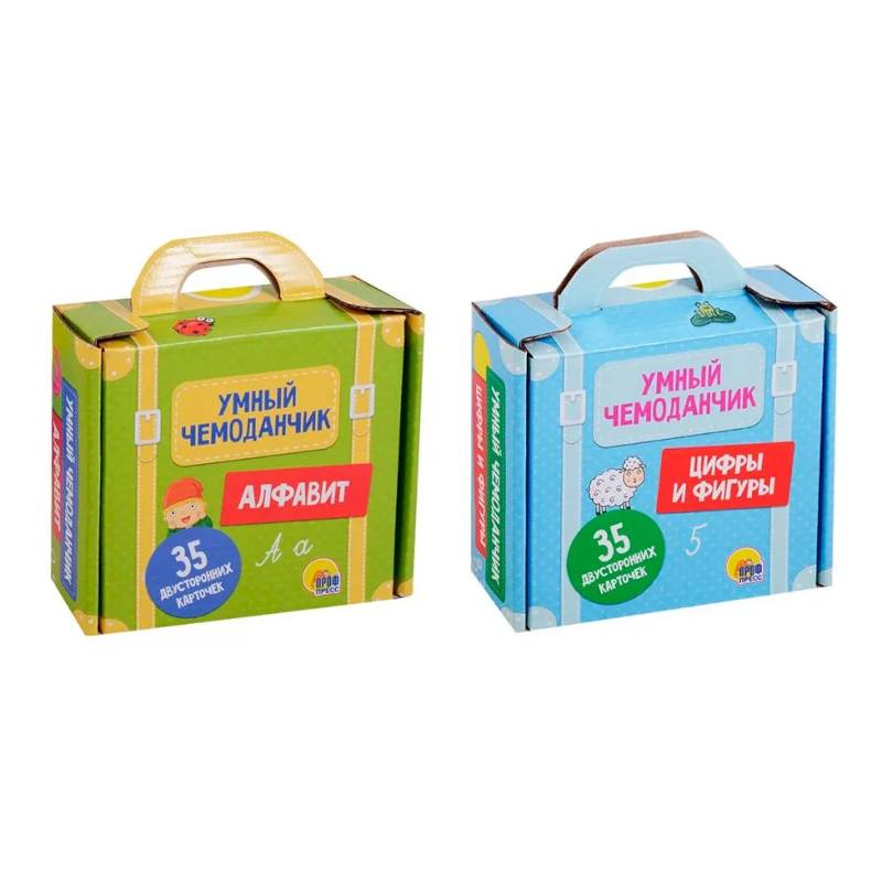 2. В этом симпатичном чемоданчике вы найдёте 35 обучающих карточек, которые помогут вашему ребёнку познакомиться с цифрами, фигурами и с основами счёта. Игры «На что похожа цифра» и «На что похожа геометрическая фигура», представленные на отдельных карточках, помогут ребёнку развить ассоциативное мышление и лучше усвоить пройденное. Яркие картинки привлекут внимание малыша, а плотный материал карточек не позволит им помяться во время активной игры.