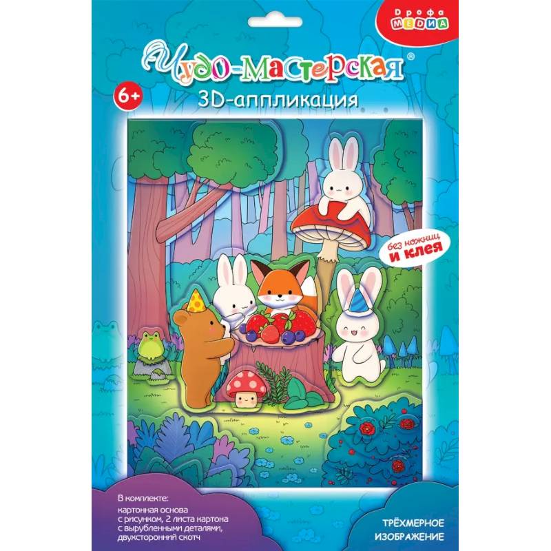 Каваий - японское слово, которое означает 'милый', 'хорошенький'. Лесные зверушки, на новой 3D-аппликации от Дрофы-Медиа, очень милые и хорошенькие! Кавайная картинка понравится детям их родителям. Детали аппликации уже вырублены, нужно только аккуратно выдавить их из основы, и приклеить на картинку объёмным двусторонним скотчем.