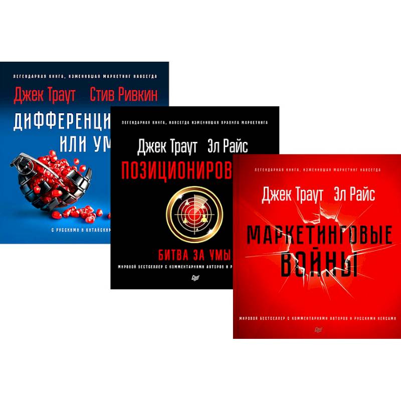 Комплект из трех книг гуру маркетинга Дж.Траута образует мощный инструментарий для освоения ключевых принципов и методов маркетинговой деятельности, рекламы и стратегии позиционирования на рынке. Каждая книга внутри комплекта дополняет и расширяет понимание современных методов продвижения, создания  брендов и формирования эффективных маркетинговых стратегий. Станьте экспертом в сфере маркетинга благодаря комплекту книг Дж. Траута.