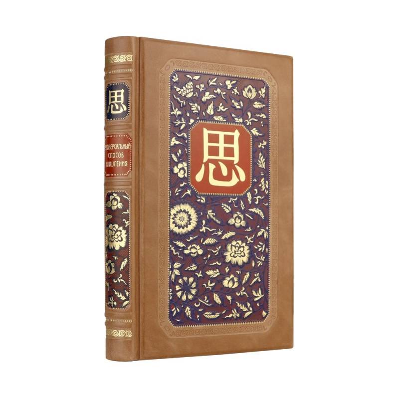Подарочное издание в коллекционном инкрустированном переплете ручной работы. Книга отпечатана на бумаге премиум-класса. Тиснение многоуровневое рельефное, золотое и натуральным пигментом. Кожа натуральная двух цветов: бежевая и синяя. Обрез торшонирован, окрашен и вызолочен вручную. На передней сторонке переплета помещено изображение иероглифа «Мысль»