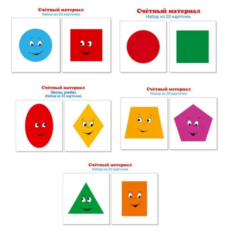 - Счетный материал. Набор из 20 карточек. Ромбы, овалы;