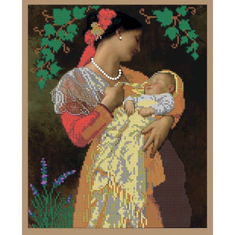 'Мать с младенцем' 24x30см набор на атласе для вышивания чешским бисером 'Вышивочка' в коробке ВЛ-057