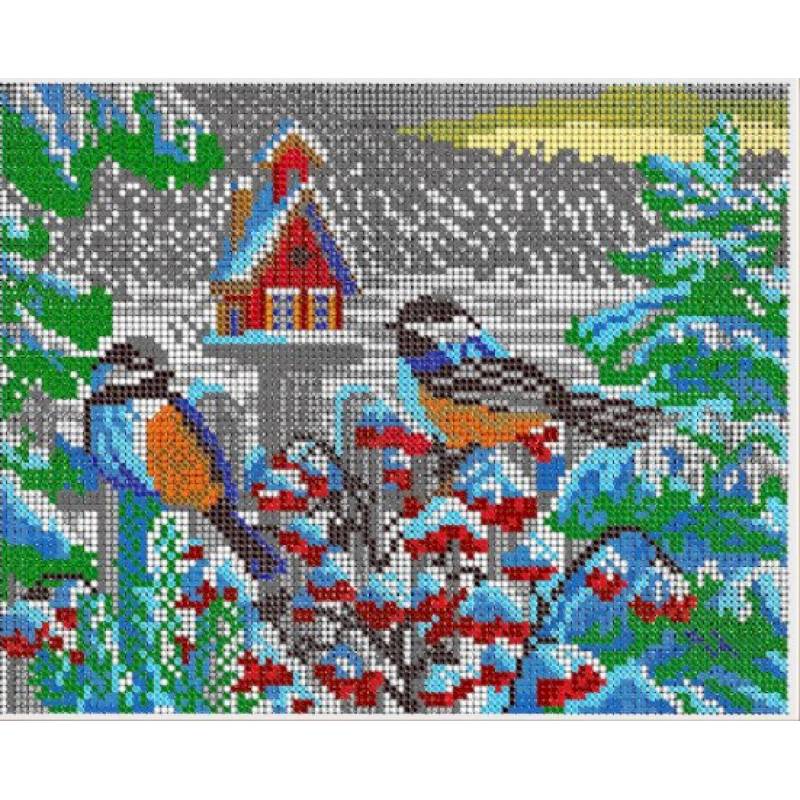 —Набор для вышивания бисером К-287 24х19 см. Снегири у домика