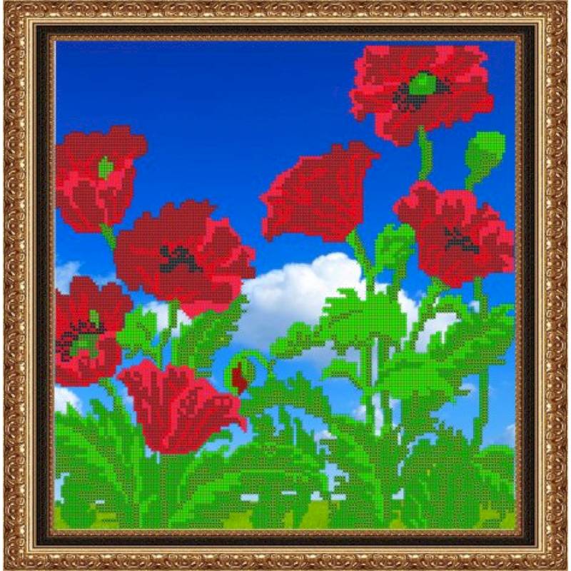 —«Светлица» набор для вышивания бисером №029 «Маки» бисер Чехия 32,9x33,2 см