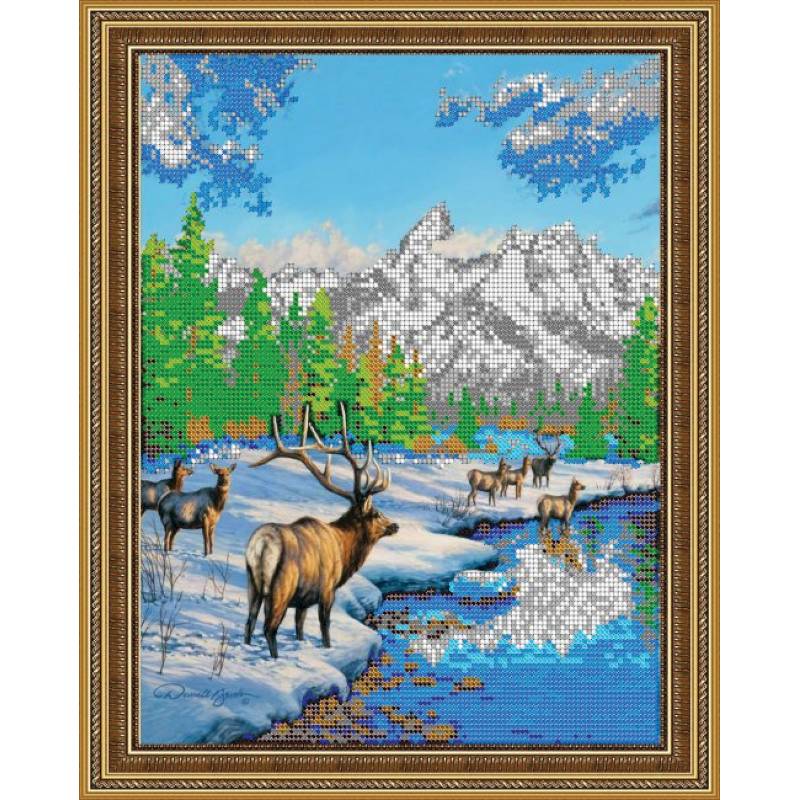 —«Светлица» набор для вышивания бисером №361 «Олени зимой» бисер Чехия 25,2x31,1см