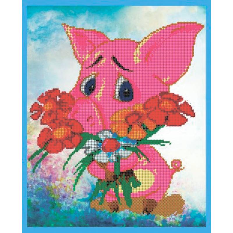 'Застенчивый хрюнь' 25x30см набор на атласе для вышивания чешским бисером 'Вышивочка' в коробке ВЛ-084