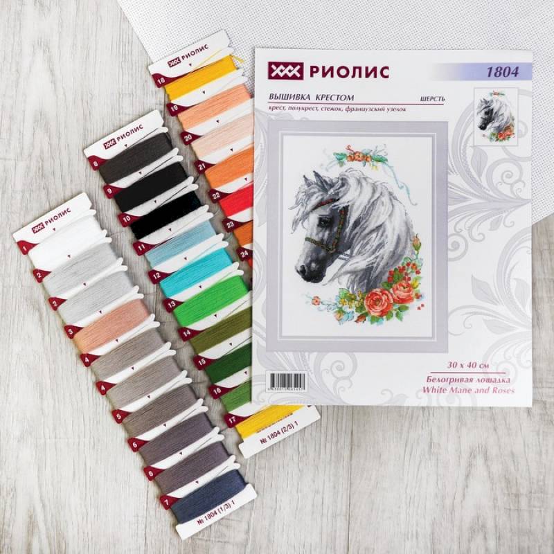—Набор для вышивания крестиком 'Белогривая лошадка' 30x40 см