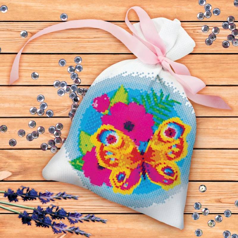 —Вышивка крестиком на мешочке 'Бабочка'