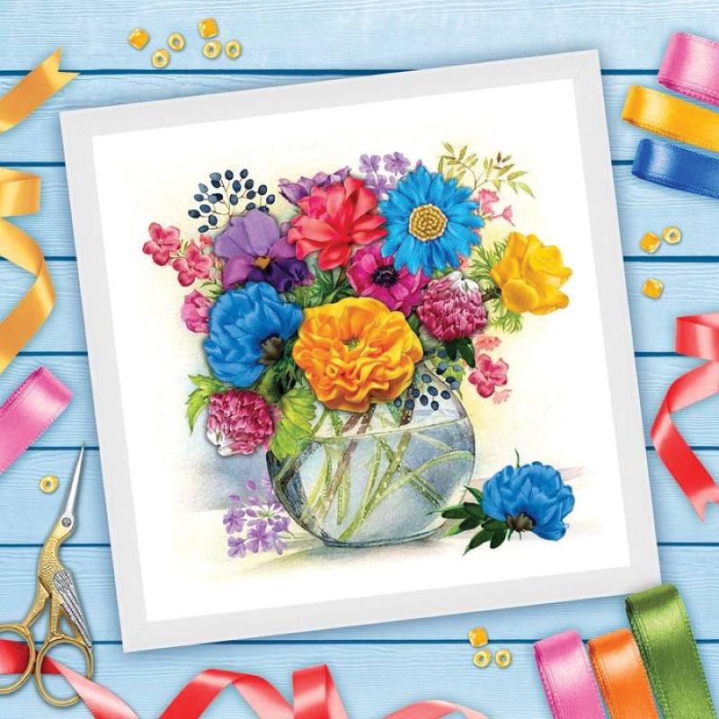 Вышивка лентами 'Поле в цвету', 25x35 см